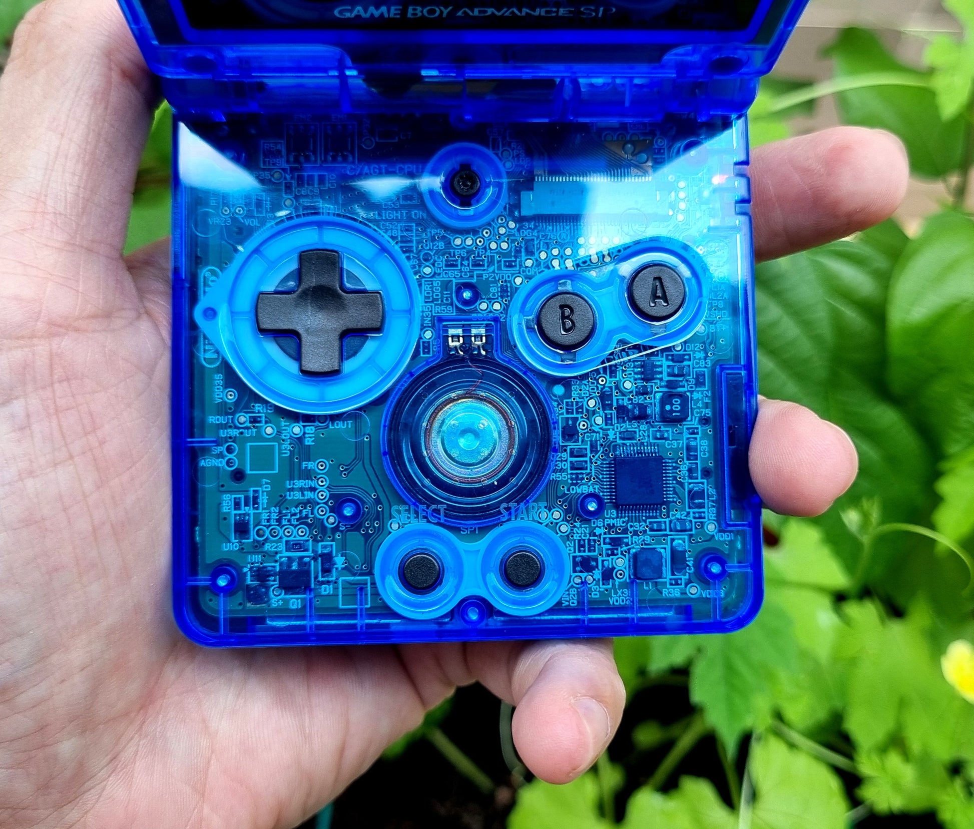 🎨 LED buttons mod: Lights up your Game Boy Advance SP with a Flexible RGB LED Cable which is installed inside the shell (this flex cable is also known as Retroglow). Pair with clear buttons to make your GBAsp shine!