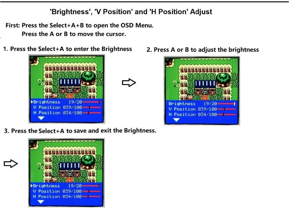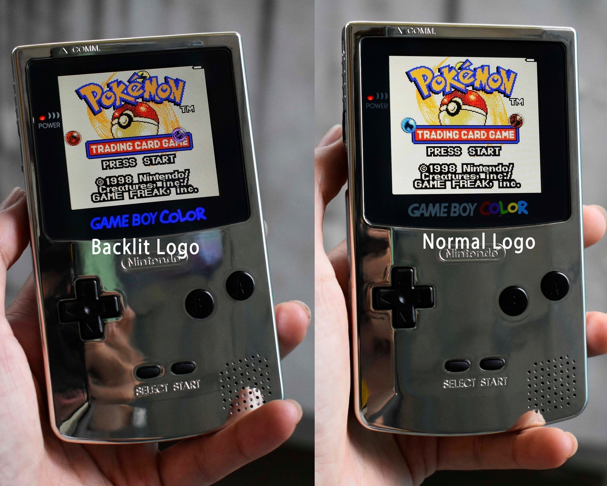 🔸️Glass lens with backlit logo Gameboy Color: all the letters of the logo are backlit (light up) and has the same color. Can change the color of the letter in the OSD menu.
